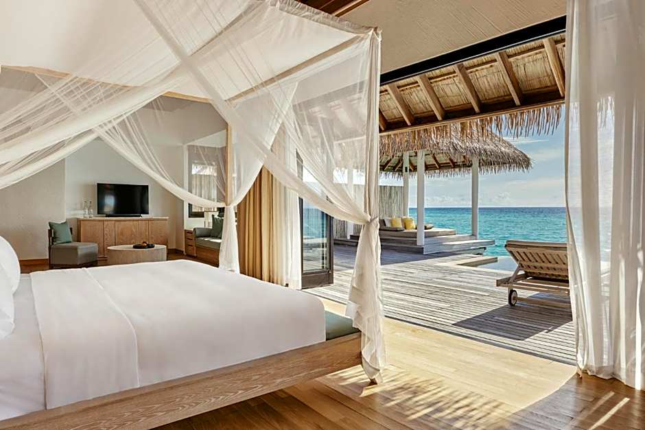Luxurious suites feature a private pool with sun loungers, outdoor rain-shower and direct access to the open sea.